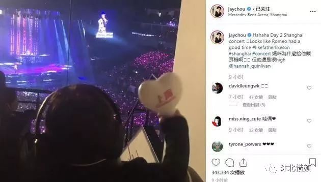 在10月19日凌晨,周杰伦在网上晒出了他儿子罗密欧到演唱会现场助威的视频。从视频中可以看到,罗密欧跟着歌曲《简单爱》的节奏挥舞着荧光棒,很是兴奋。因为看到儿子戴着大大的耳机,周杰伦还跟他老婆昆凌开起了玩笑,表示即使给儿子戴上大耳机,但他玩得还是很High啊!