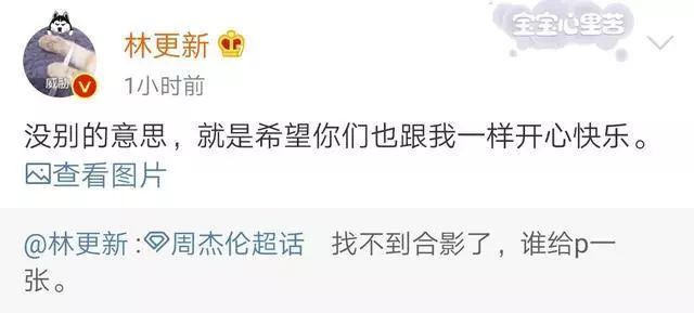 然后转发的是自己以前发过的一条动态,当时说的是:找不到合影了,谁给p一张?