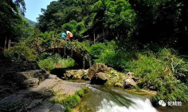 走向三峡人家深处,不再是一汪平静的溪水,一座青瓦长廊的石桥映入眼帘,桥下是奔流而下的溪水,水流清澈见底,两旁的山清水秀的美景,桥上坐着阿哥幺妹,含情脉脉,打动着有玩着的心。
