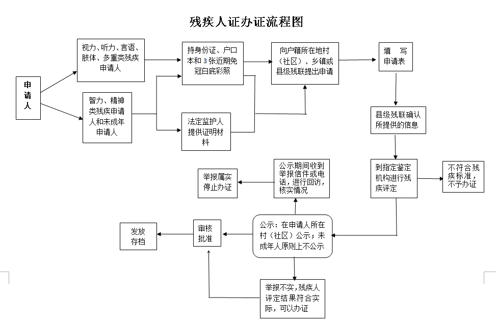 ★首次申请办理残疾人证人员,需持申请人居民身份证、户口簿和3张两寸近期免冠白底彩照,向户口所在地县(市、区)残联(部分地区村、社区、乡镇、街道可受理)提出办证申请,填写《中华人民共和国残疾人证申请表》、《中华人民共和国残疾人证评定表》。