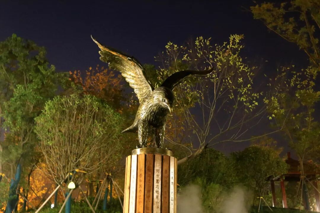 植物种植主要为《楚辞》中提到的板栗、枫香、木兰、木槿等特色植物配以宜昌特有的红花玉兰、金弹子等乡土特色植物,与牌坊相结合组成一条时空隧道,带领我们回望屈原千古精神。