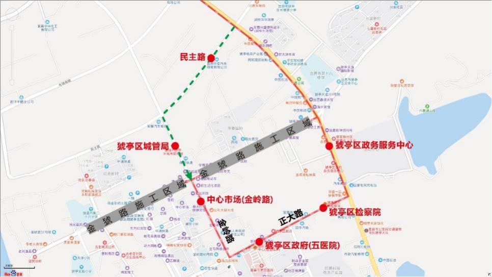 (五)92路:★首站七里冲保持不变,末站调整为中心市场(金岭路),首末班时间不变,在施工区域路段临时调整为由七里冲路经猇亭大道、民主路、金岭路、正大路、猇亭大道至七里冲路运行。