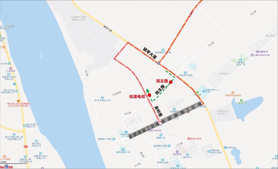 (二)86路:★首站七里冲保持不变,末站由中心市场(金猇路)临时调整为信通电缆,首末班时间不变,在施工区域路段临时调整为由猇亭大道经民主路至金岭路运行。★临时增设民主路(下行)1个站点;临时取消猇亭电商产业园(下行)、猇亭客运站(下行)、东都国际(下行)、中心市场(金猇路)等4个站点;其它路段运行线路和站点不变。