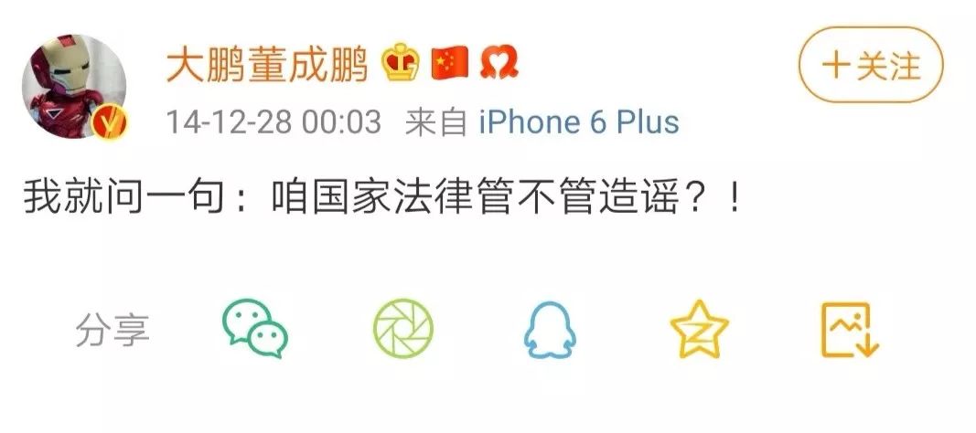 只有大鹏愤怒地为师傅发声,在微博写道,“我就问一句:咱国家法律管不管造谣?!”