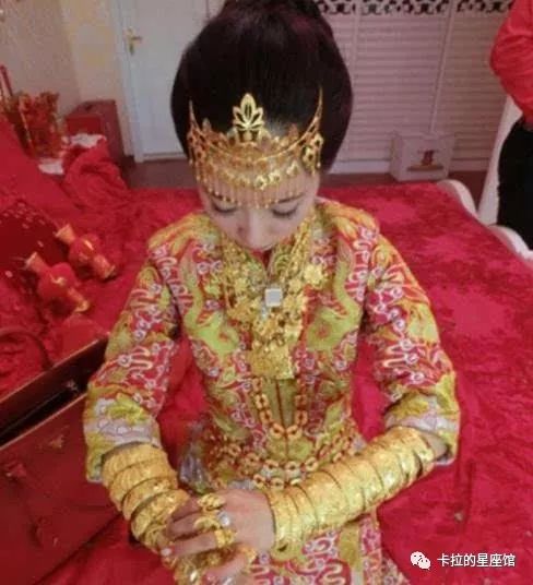 10.广东中山黄金新娘:胸前挂70只金手镯 全身挂满几十斤黄金配饰