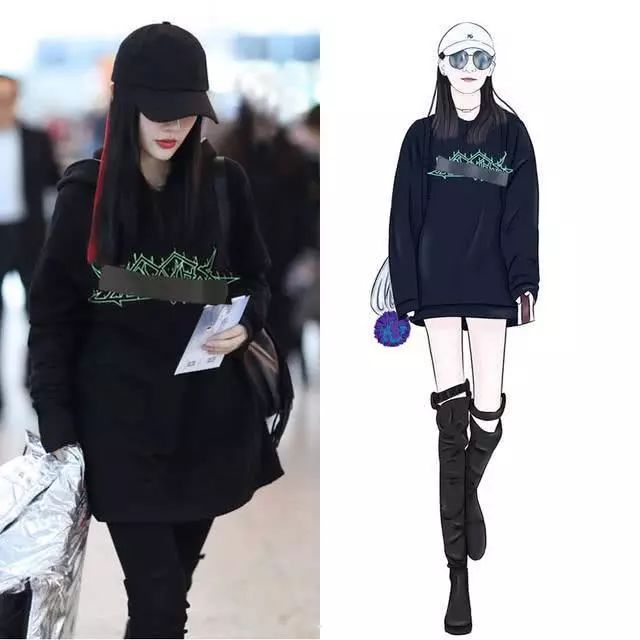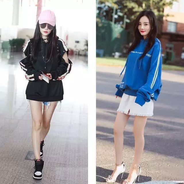 高街风的卫衣,是李小璐最常混搭的单品,利用下身消失的搭配方式,以及运动风混搭跟鞋,都是大秀美腿的极佳方式,充满青春少女感。