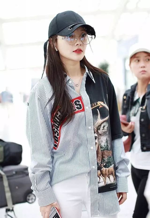 这款条纹拼接衬衫配上标准的网红眼睛,简单清爽时尚。