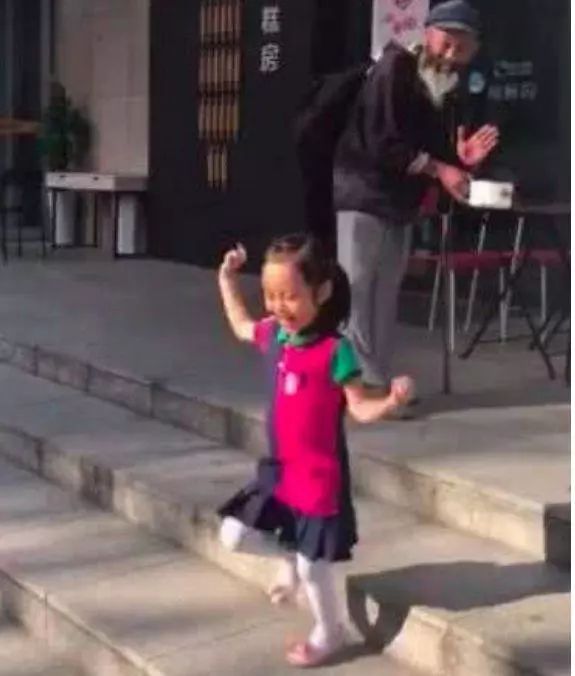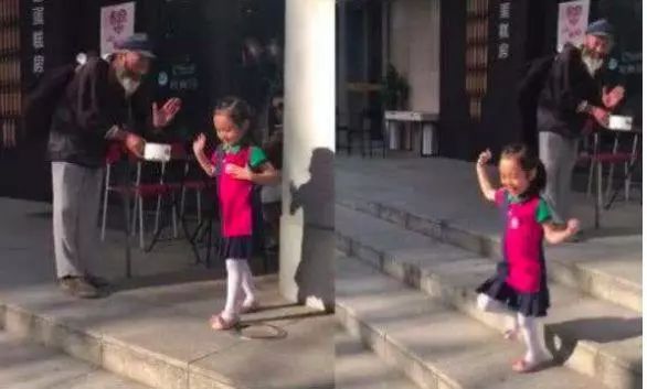 我们看有路人偶遇了甜馨在街上偶遇乞丐的一幕,一般的家长肯定就是不会让自己的孩子跟这些流浪者们接触,但是我们看到甜馨在放学了之后,开开心心的跳跃着,把自己的零花钱给了这个乞讨的老爷,走到时候还非常开心的跟老人家挥手道别,看起来非常的开心,