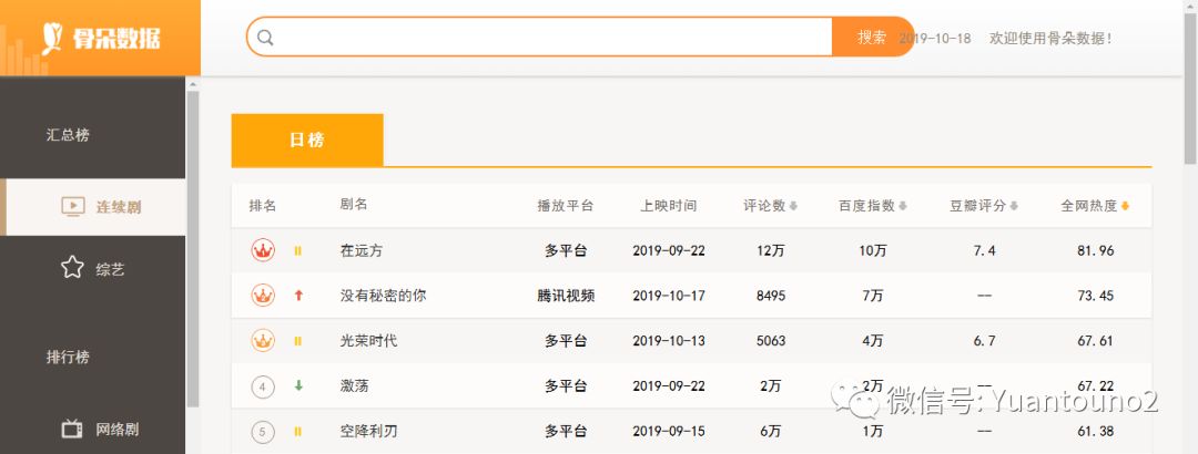 近日,根据“骨朵数据”显示,当前电视剧全网热度排行榜前五如下:《在远方》以全网热度高达81.96分问鼎榜首;《没有秘密的你》以全网热度73.45分紧随其后;《光荣时代》以全网热度67.61分挤进前三;《激荡》以全网热度67.22分跌至第四;完结后的《空降利刃》热度不减,以全网热度61.38分挤进前五。下面,笔者就榜单五部电视剧给大家做个简单点评,剧荒的你可以选择收藏。