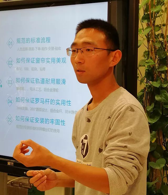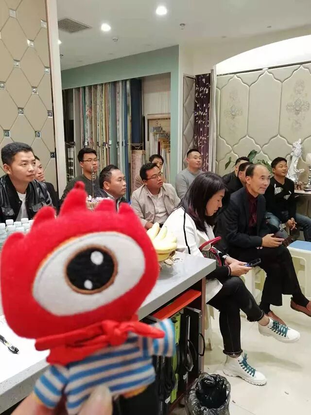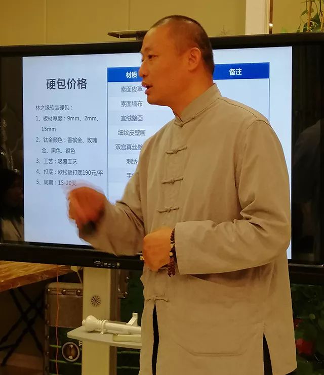 李经理向大家介绍林之缘品牌的发展历程,以及林之缘窗帘、壁纸、壁布、软硬包、装饰画等产品知识及安装过程中常见的疑难问题和解决办法。