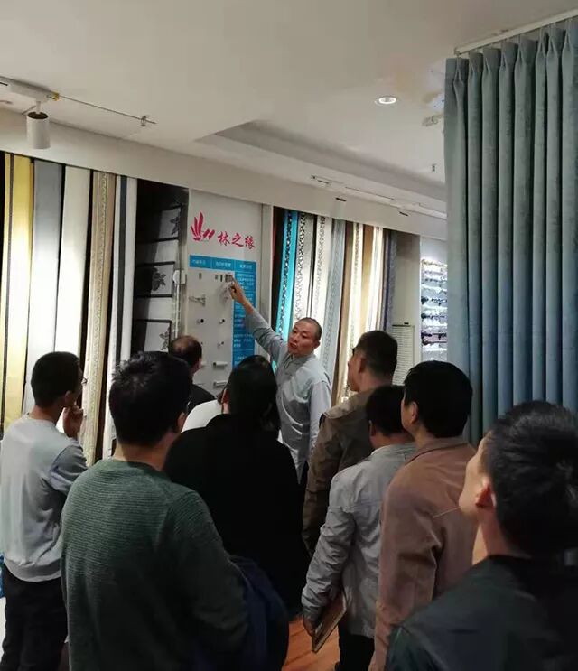 工长们参观了林之缘窗帘展厅、壁布展厅,并且对林之缘的强大品牌资源,资深设计团队、专业施工团队有了深入的了解。