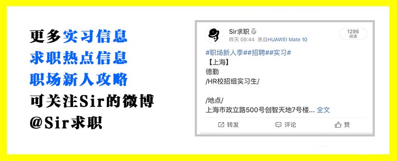 更多高薪、留用求职信息,请关注sir的微博(微博名:Sir求职)