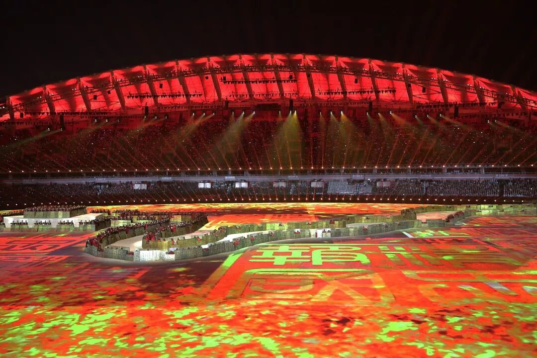 军运会会徽“和平友谊纽带”被点亮引来观众雷鸣般的欢呼声