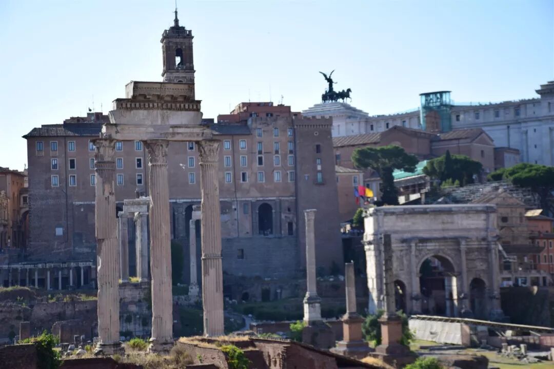 在罗马古都遗址上,矗立着帝国元老院、凯旋门、纪功柱、万神殿和大竞技场等世界闻名的古迹。在这些历史古迹的包围中,你仿佛跌落入当年那个伟大的罗马帝国。那份真实,那份生动,在阳光的照耀下让人浮想联翩。