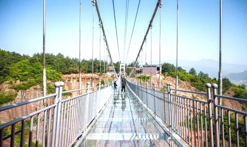 ? 挑战高空全透明玻璃桥,悬崖玻璃栈道;;