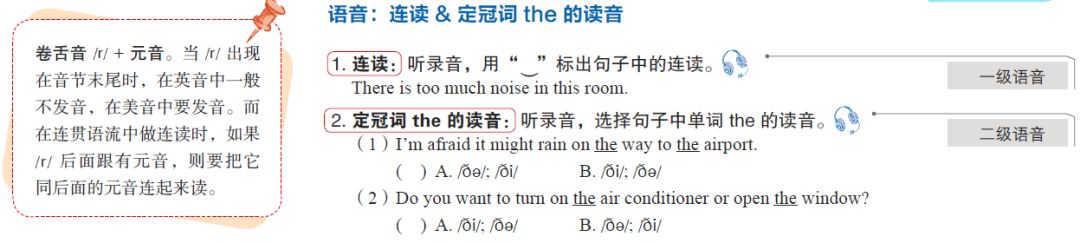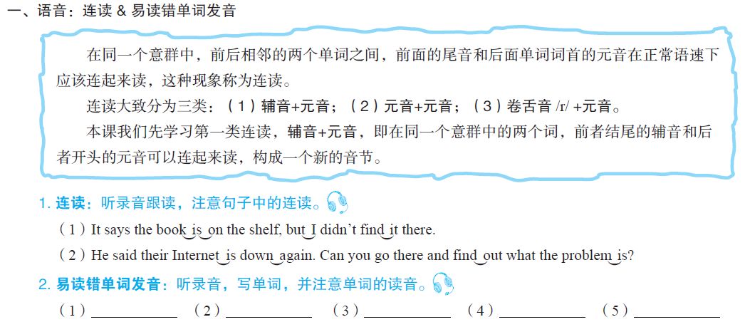 可以仿效《高中英语听力专项训练》《高中英语听力强化训练》高一、高二分册中刻意练习部分的意识培养。 高中阶段需要学生学习的语音概念如下