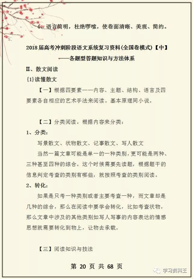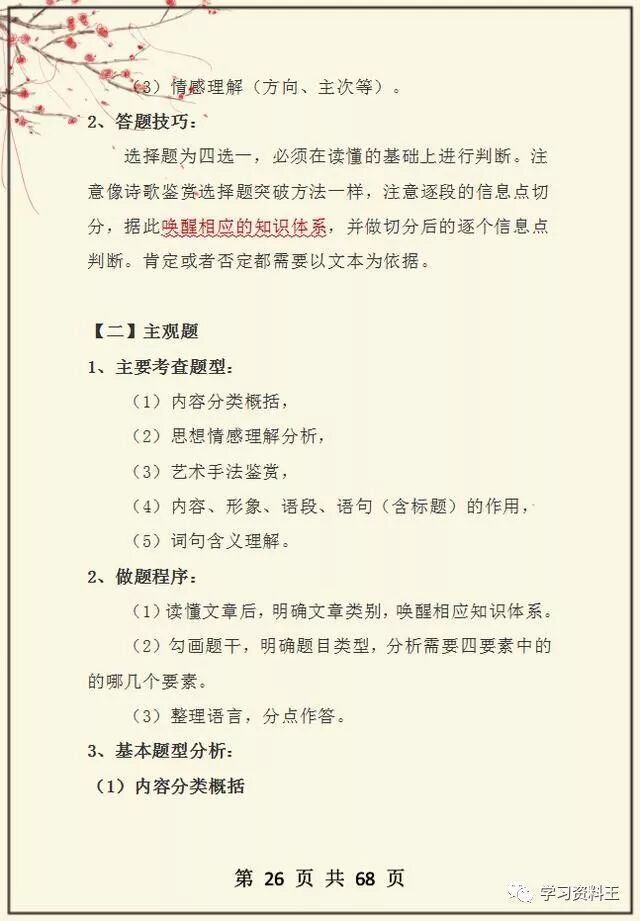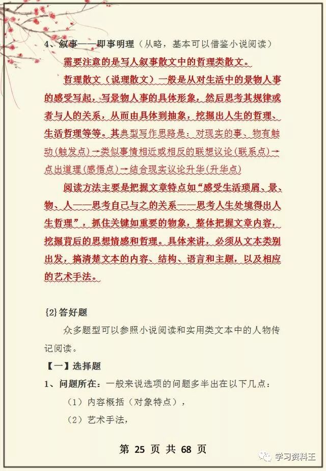 鉴于很多同学在阅读理解上都存在问题,没有解决方法,老师这次就整理分享一位高考文科状元的学习笔记,她高中3年语文最低分不下135,这份答题攻略烂熟于心,同学们也可以学习借鉴一下,我相信对于大家提升语文成绩会有一定的帮助,打印收藏吧!