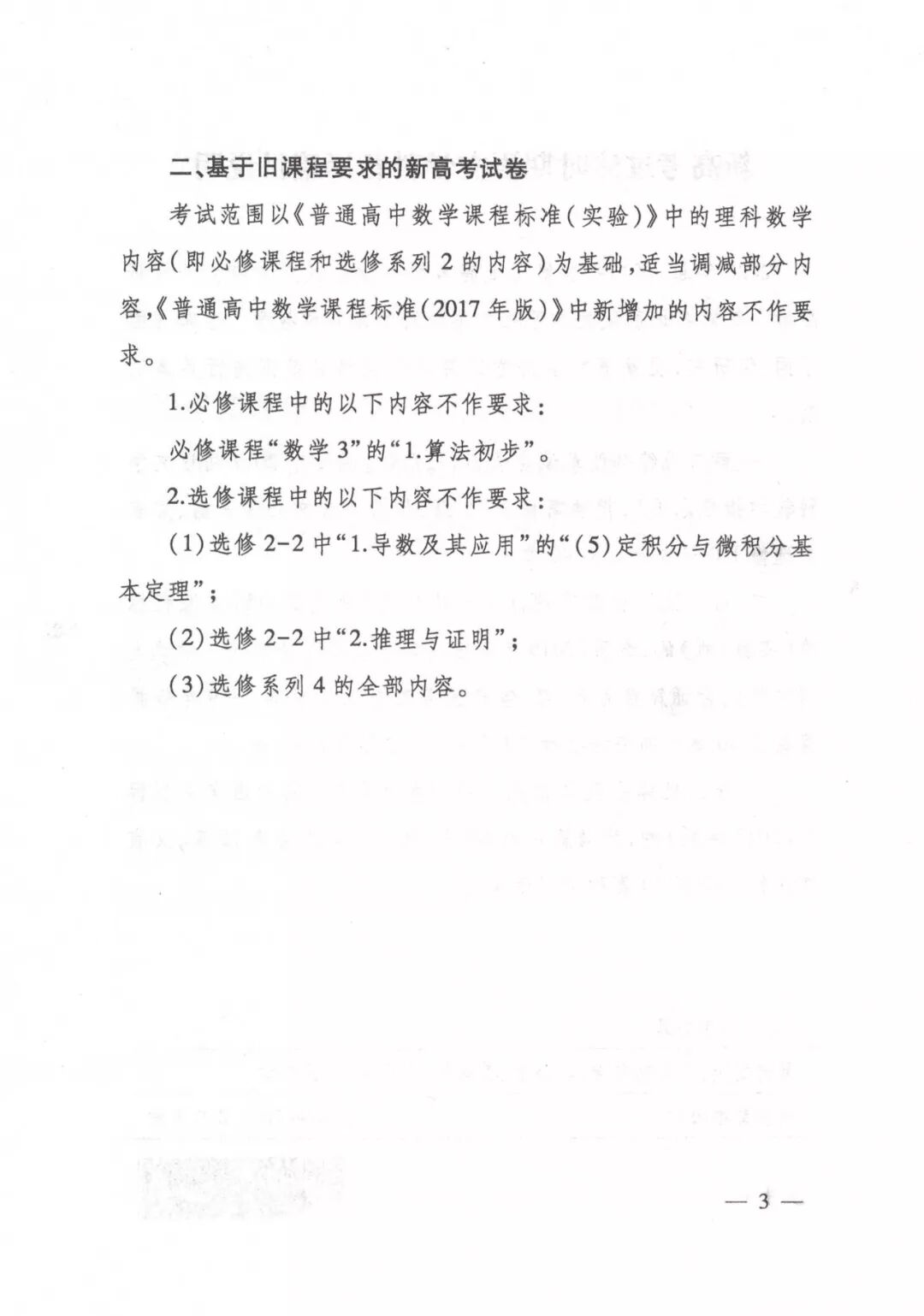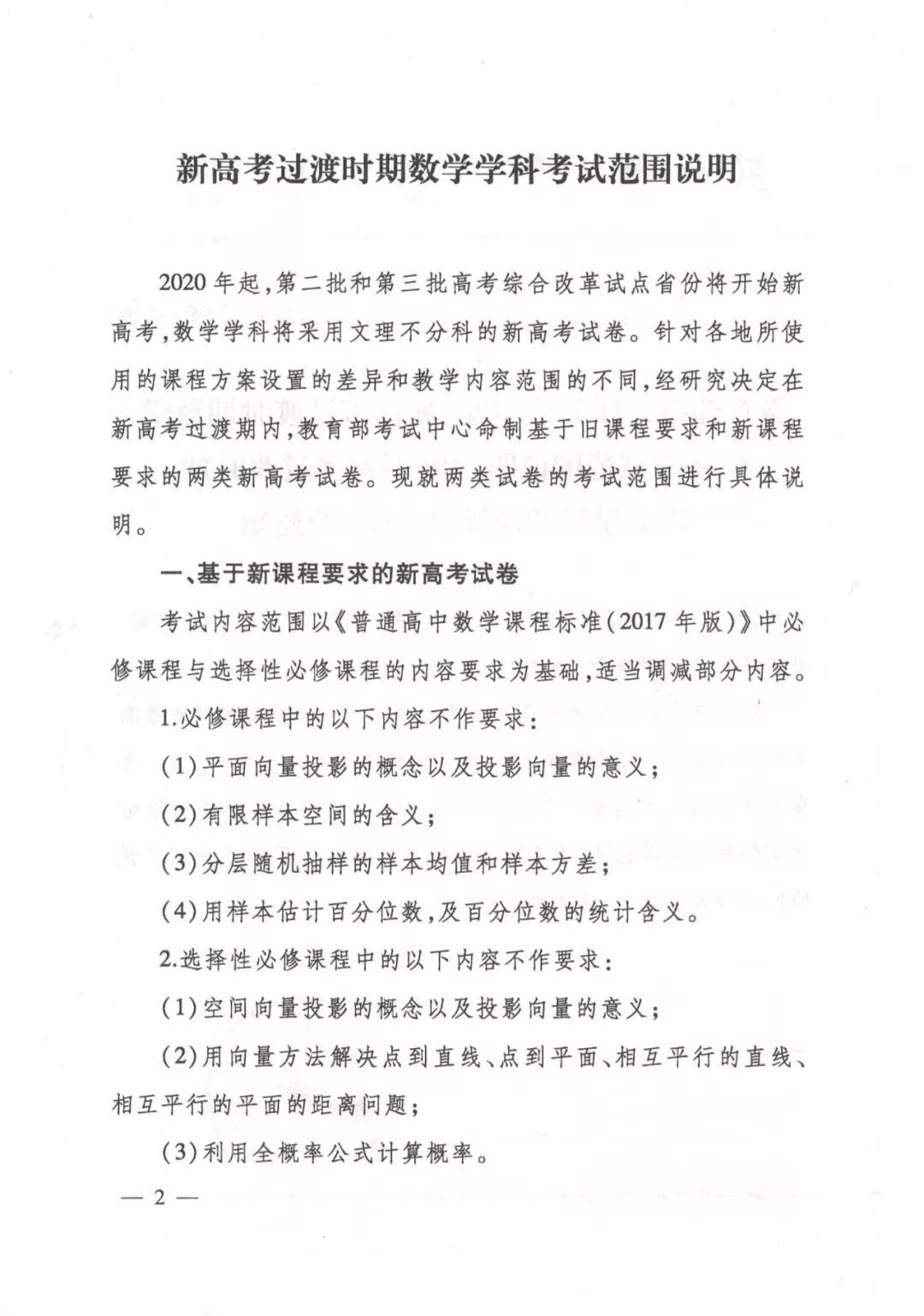 从2020年高考开始,将针对新高考试点省份实行新课程方案的差异和教学内容范围不同,命制两套新高考全国卷,并对考试范围做了具体说明。
