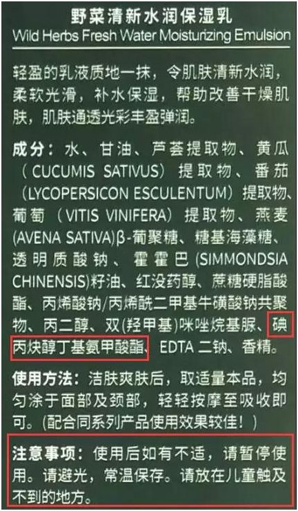 关于“碘丙炔醇丁基氨甲酸酯”警示语标注不符合《化妆品安全技术规范》(2015年版)表4的要求
