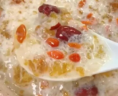 4、将食材里面的营养物质都充分的熬制出来之后再把火关了,最后再倒入1罐纯牛奶,然后用勺子搅拌均匀,这道美味营养又滋补的养颜甜汤就炖好了。一到冷天,我从不用化妆品,每天喝一碗它,面色红润,色斑也没了,喝这汤羹比敷面膜强多了!坚持每天喝一碗,面色红润显年轻,色斑也没了。