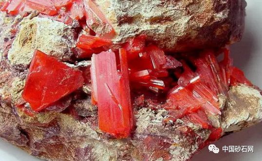 雄黄是硫化物矿物,它含有砷和硫,为砷的重要矿石。雄黄通常与雌黄伴生在一起,如果雄黄长期暴露在阳光下,它就会分解变成雌黄并成为粉末状。生长得好的雄黄晶体为短柱状,晶体在一起为粒状、块状。红色,油光泽。