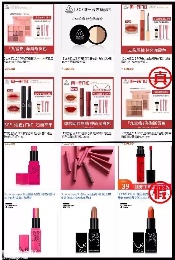 3CE这几年的彩妆可谓是做的风生水起,当然少不了有很多眼红的!大家购买时一定要认准“有三角形”的商标!那才是正品!