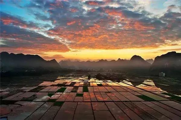 15:00 继续徒步,进入苹塘峰林腹地,这里密集的峰林相拥而立,狭长的田园倒映着峰林蓝天,是另一番精华美景