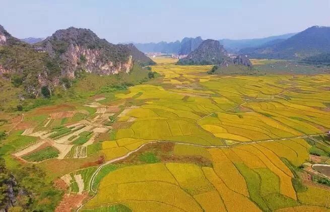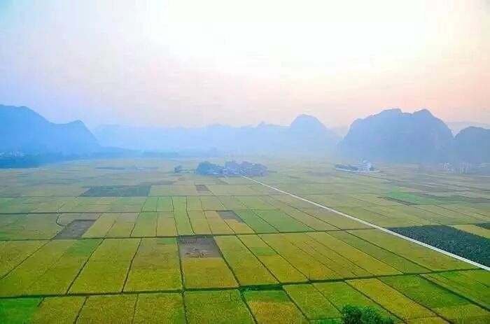 罗定苹塘果然不辜负“中国美丽田园”的称誉,金黄的稻田,配合特有的喀斯特地貌,俨然一幅幅闲适、清幽的淡墨素描。