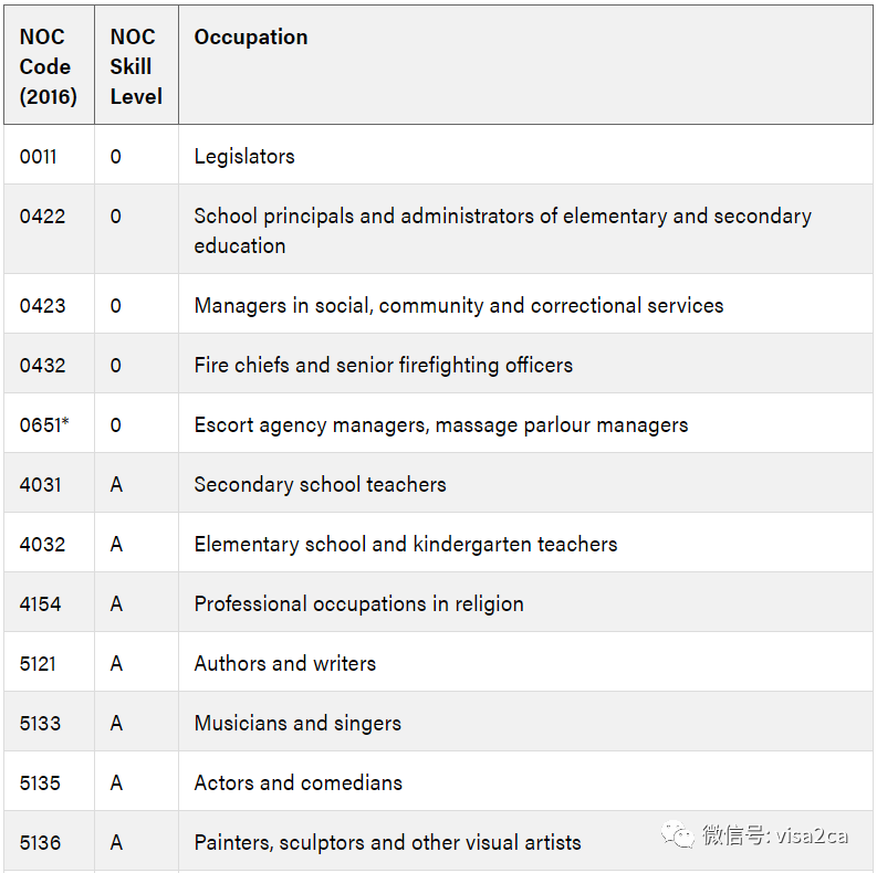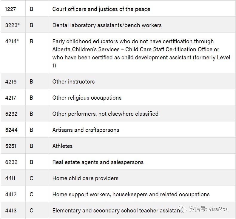 如果申请人现今是持有毕业工签的国际毕业生,必须从阿省指定的高等院校毕业,并且职业需要跟在阿省所学的专业相关联;如果申请人是在2019年4月之后被符合要求的研究生水平证书项目录取,并且现在完成了该项目的学习,那么其职业需要与其之前本科期间所学专业,或者之前在加拿大以外的地方研究生所学领域相关。除了上述不符合要求的图片列表之外,毕业工签持有者需要检查一下自己的职业是否在下图的加拿大政府阿省高收入和低收入职业-不给予LMIA列表中,如果在这个列表中的话,也是不能申请AOS项目的。