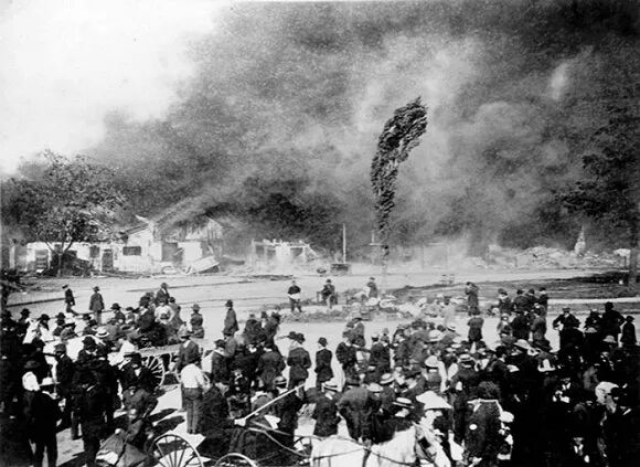 1887年5月4日,圣何塞市市场大街中国城被纵火焚毁(图源:History San Jose)