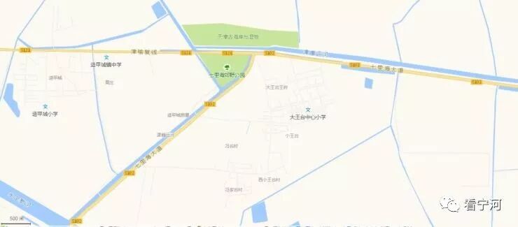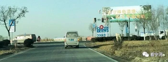 沿着这条路又出了这个美丽的超大村庄,仔细看下图发现这里是哪了吗,为了看清楚,我们再放大一下,路标上写着距离芦台36公里,这里就是著名的七里海大道