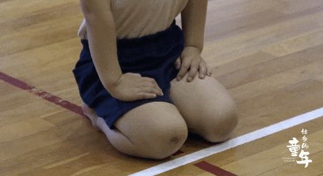 一个孩子受伤了,还要忍着痛苦,直到打坐结束。