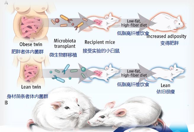 在都吃低脂高纤健康饮食的情况下,接收了“胖菌群”的老鼠就悲惨的变成了胖老鼠,而接收了“瘦菌群”的老鼠还是瘦老鼠!