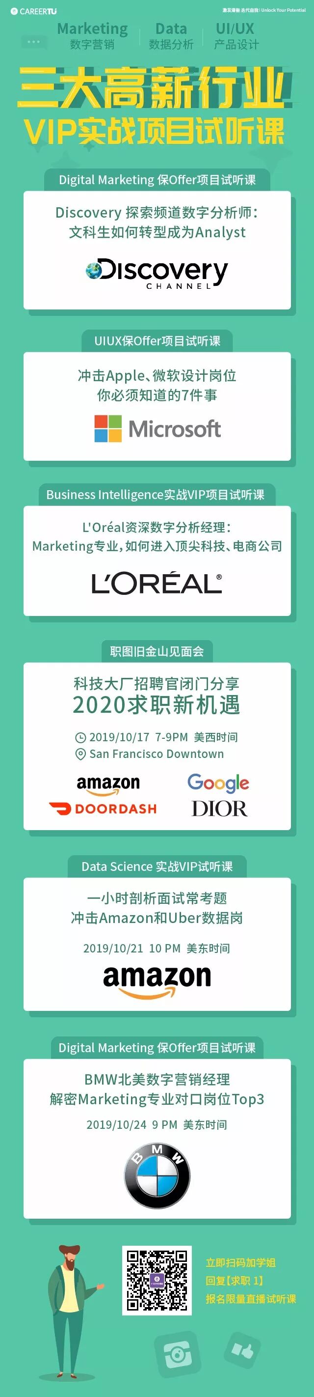 同样,越来越多企业重视商业智能分析的人才,商业智能分析在求职中占有重要优势,想进入大厂的同学来一定不要错过啦!