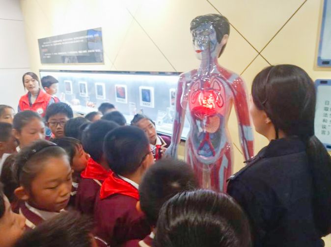 接着,讲解员带着大家来到吸毒者的模型前,这个模型是按照人体血液循环的路径而设置的一个LED灯,通过LED灯的闪烁循序,来演示注射毒品时危害心脏以及大脑的过程,通过这样的展示,大家更能直观地看到毒品的危害。