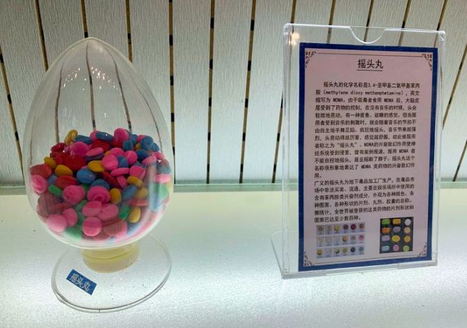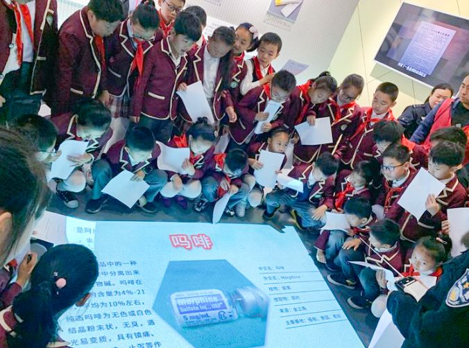 警察讲解员带着大家进入第一个展区“毒品近在你我身边”。通过讲解员的生动讲述,大家认识了什么是毒品、毒品有哪些以及毒品的特性。
