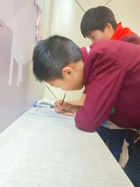 你瞧,有的三五成群地商量着、探讨着;有的独自一人埋头思考着;有的蹲着认真地思索着;甚至还有的直接趴在墙上比划着……