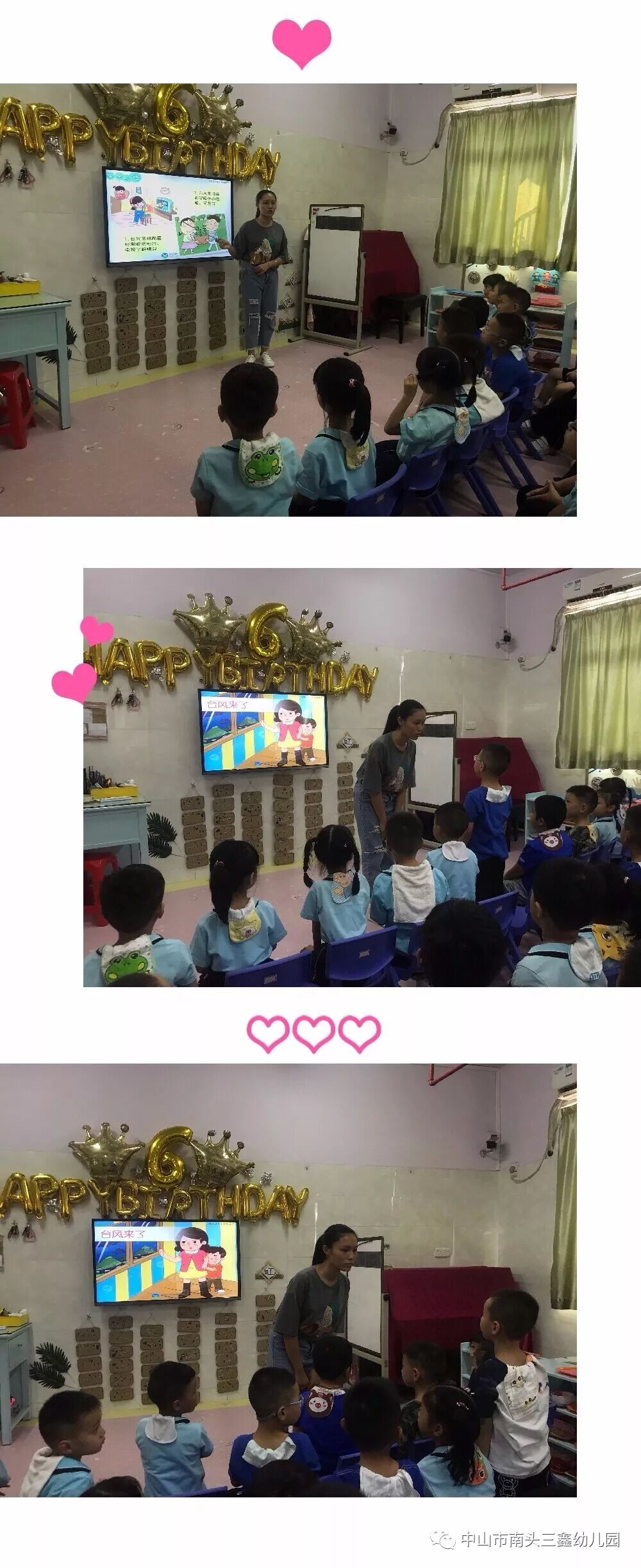 针对广东地区台风天气,让全班幼儿了解台风危害和自我保护的知识方法,以达到在发生台风时,能有序、迅速地安全疏散。2019年9月29日下午,各班级通过开展班会,讲解台风的形成,集体探讨事情的经过和结果,以情景模拟作体验。