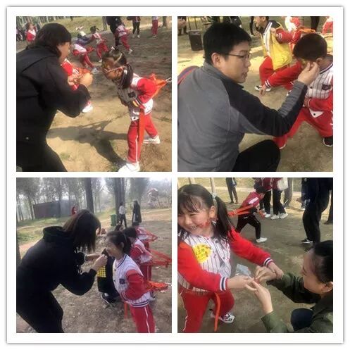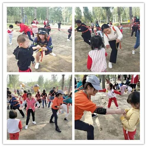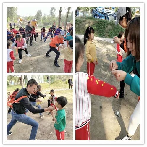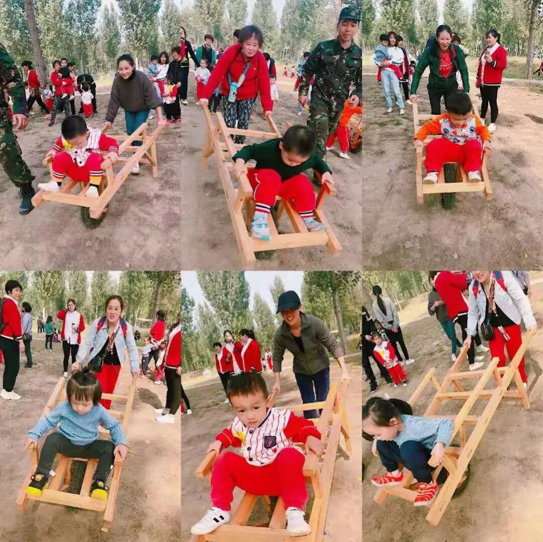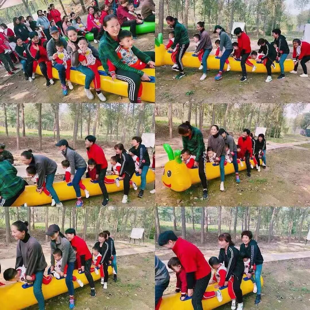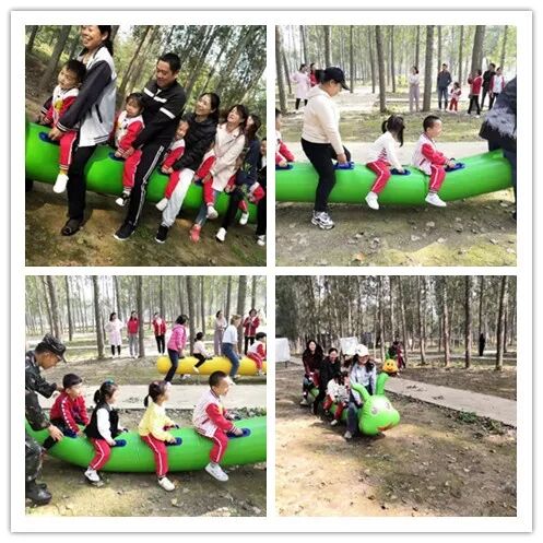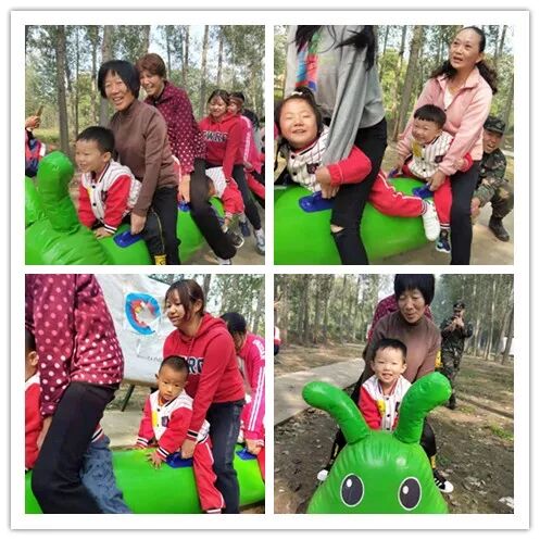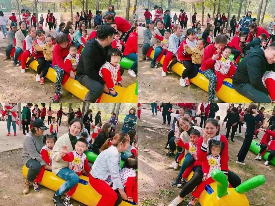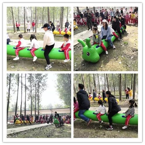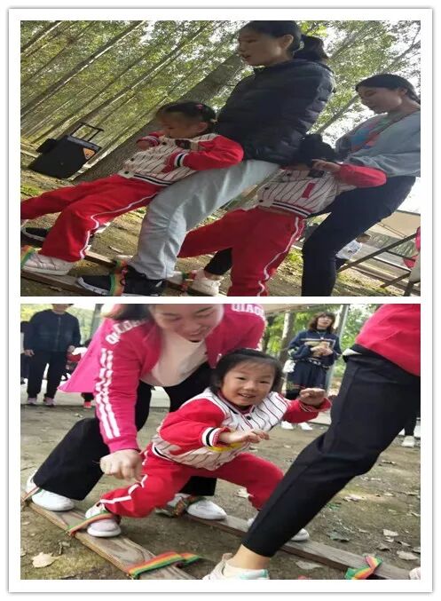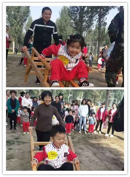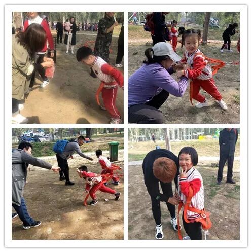 同舟共济胜利的毛毛虫,在胜利的彼岸享受着喜悦。第二大组的幼儿和家长完成了上一个游戏也赶到了现场,因为,要开始第二亲子配合游戏“同舟共济”,家长用独轮车把幼儿推到指定地点,然后,幼儿与家长套上木板一起喊着“一二,一二......”往前进,最终依然是看哪一组率先到达终点。