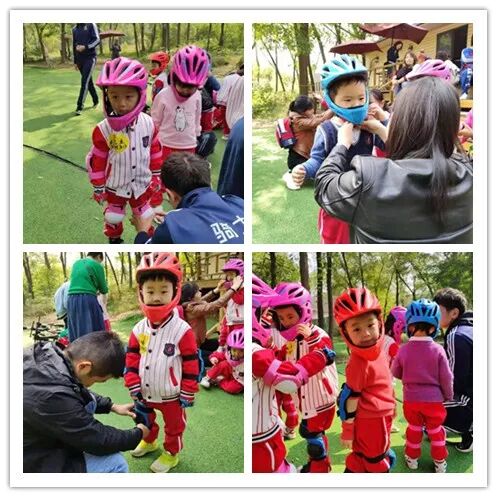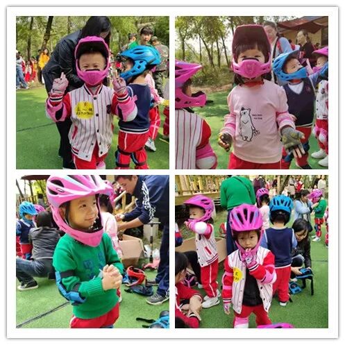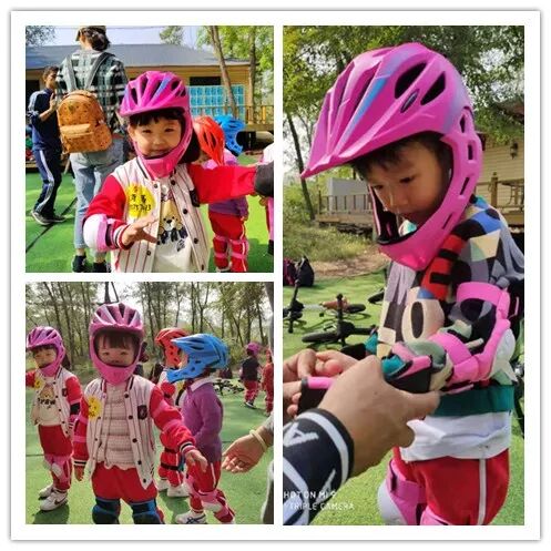 幼儿们,穿戴好护具,时刻准备着比赛的开始。