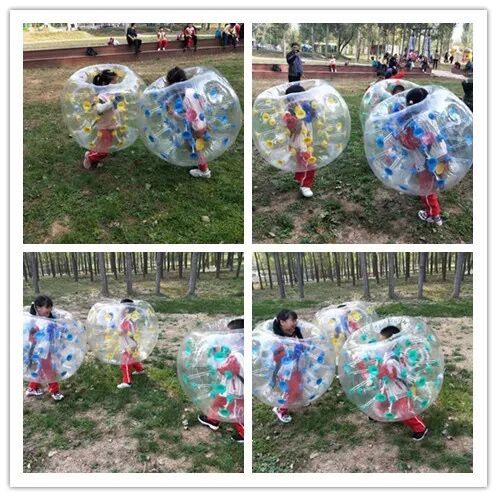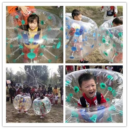 开心碰碰球游戏活动开始前,教官给大家分好队伍,讲解要注意的安全事项,然后,由带队的老师进行引导游戏的开展。幼儿们都迫不及待着游戏快点开始。终于讲解完之后,游戏开始了,第一个游戏就是非常刺激好玩的碰碰球。