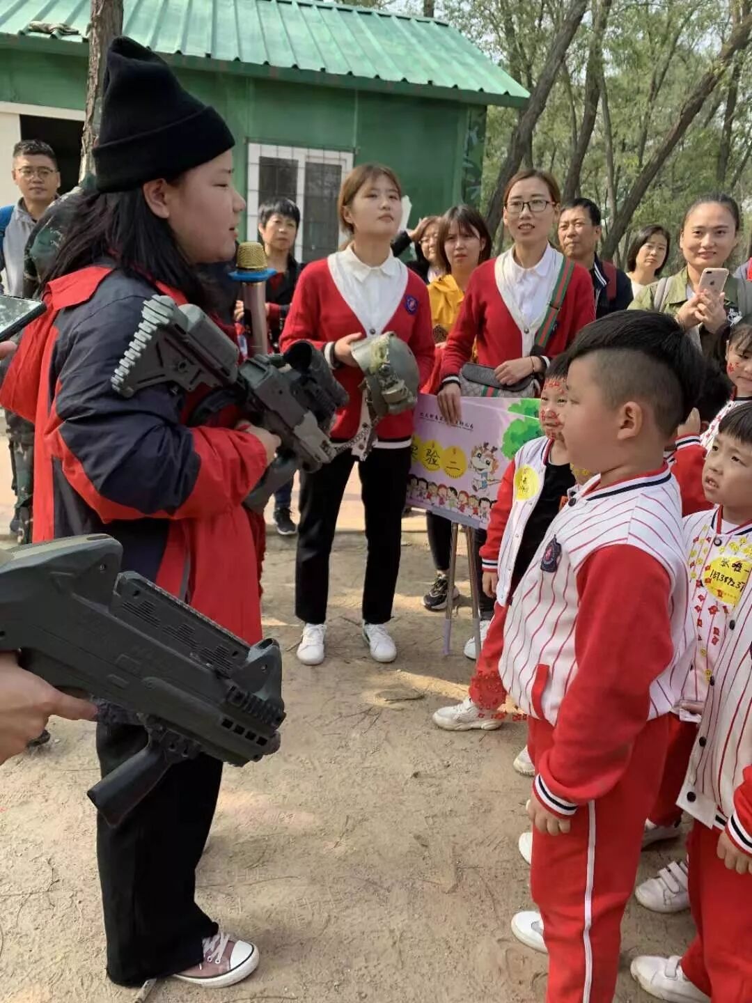 枪战开始前,幼儿们席地而坐,听教官讲解如何躲避、如何多方位开枪扫射、如何跑动射击等方面的示范,小战士们充分感到了勇往直前的气息。
