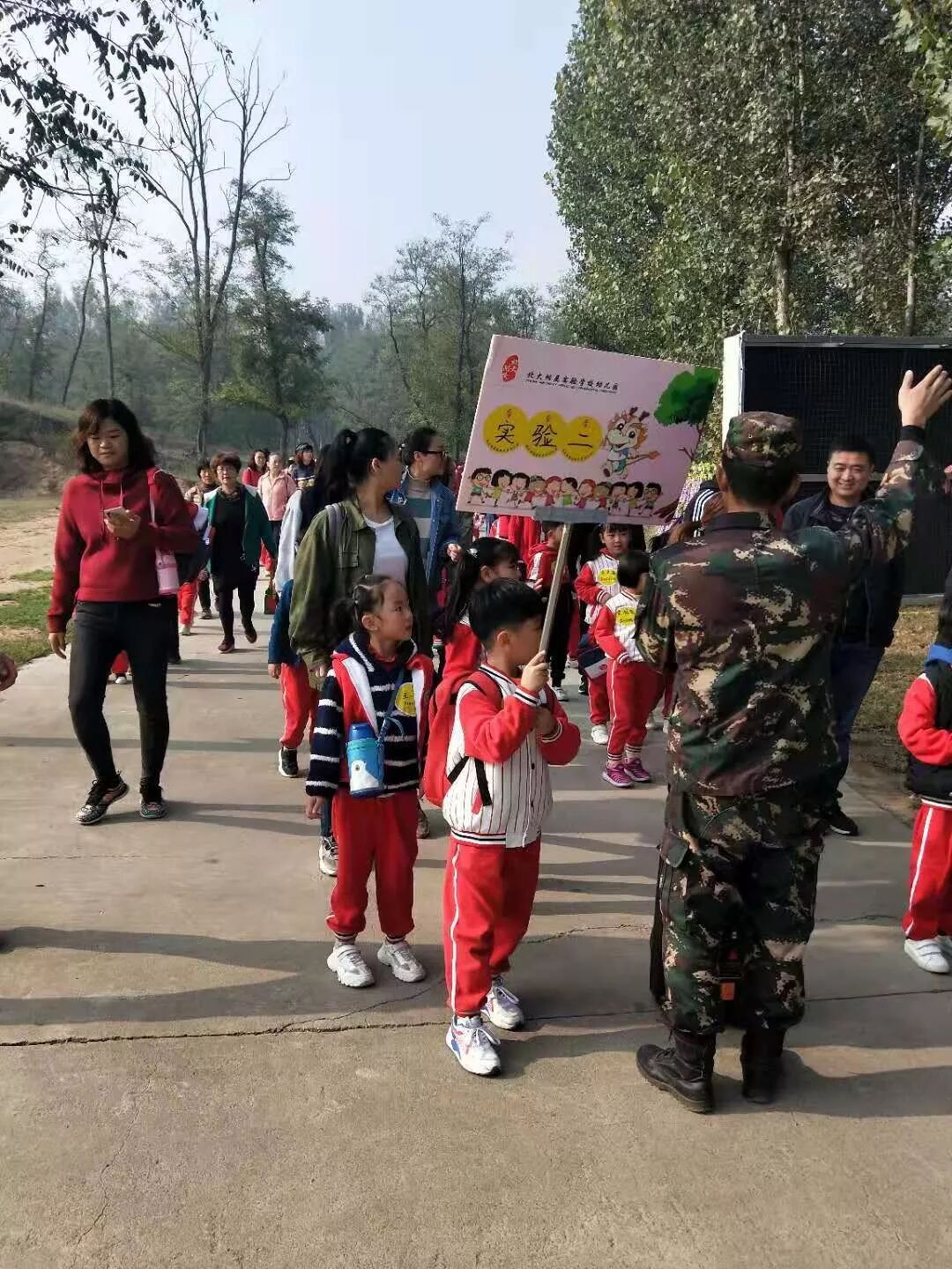 走啊走,跳啊跳,秋游亲子活动的教官出现了,教官向各位前来的家长和幼儿问好,然后,带着大家前往集合地。