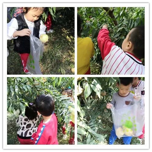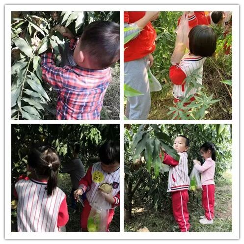 采摘桃子饱饱的吃了一顿美味的佳肴后,幼儿和爸爸妈妈休息片刻后,跟随着老师的指引来到,一个很大桃园,这里放眼望去有看不到边的桃树。接下来,幼儿们要拿着手提袋去梨树上采摘桃子,享受秋季的果实,同样也可以感受农作的辛苦以及劳动果实的来之不易。