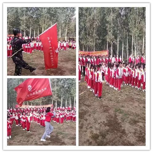 到达集合地点,活动教官向王老师授旗。然后教官带着现场的家长和幼儿一起做活动前的互动操。