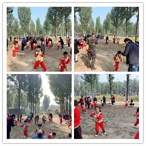 奔跑吧!毛毛虫经过一番精彩刺激的力量与智慧角逐的碰碰球游戏,家长和幼儿丝毫没有感到累,教官带领大家来到了另一个场地,开始一场名叫“奔跑吧!毛毛虫”。这个游戏讲究协同配合完成,需要家长与幼儿默契配合,看哪一组率先到达终点。分好组后,比赛开始啦。