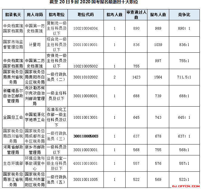 贵州西藏职位竞争激烈 北京职位最受考生青睐