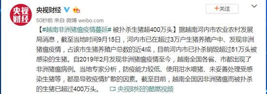 *据越南河内市农业农村发展局消息,截至当地时间9月15日,河内市已在超过3万户生猪养殖户中、发现非洲猪瘟疫情,占该市生猪养殖户总数的近4成,目前河内市已扑杀销毁超过51万头被感染的生猪。*