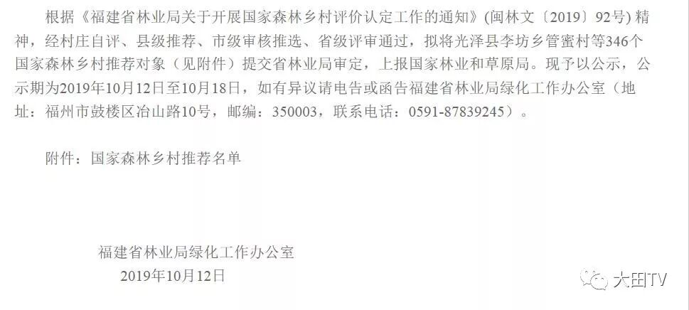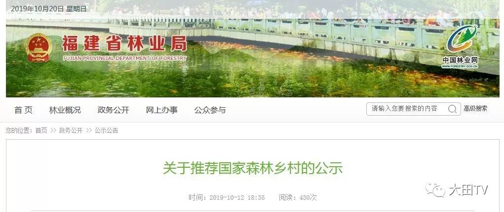 日前,福建省林业局网站发布《关于推荐国家森林乡村的公示》其中大田县桃源镇兰玉村上榜
