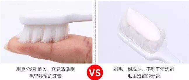 ▲左:普通牙刷;右:万毛牙刷
